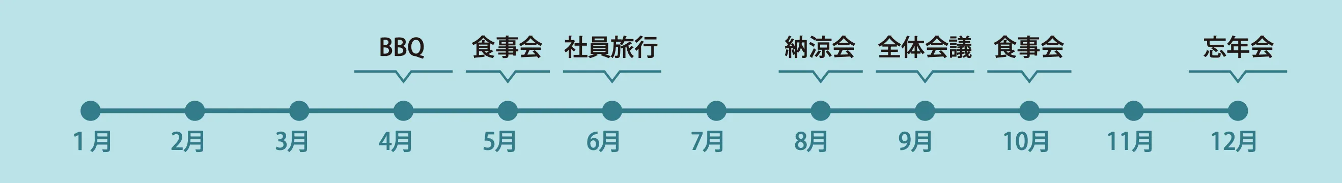 • 食事会・BBQ・社員旅行などの社内行事の企画、立案、設営
